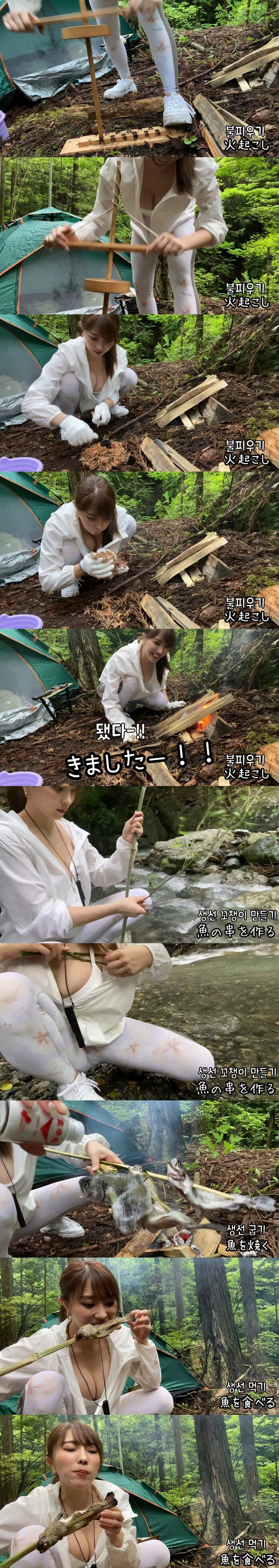 일본의 그라비아 아이돌인 모리사키 토모미는 직접 캥핑을 하는 모습을 촬영해 동영상을 업로드 했다.
