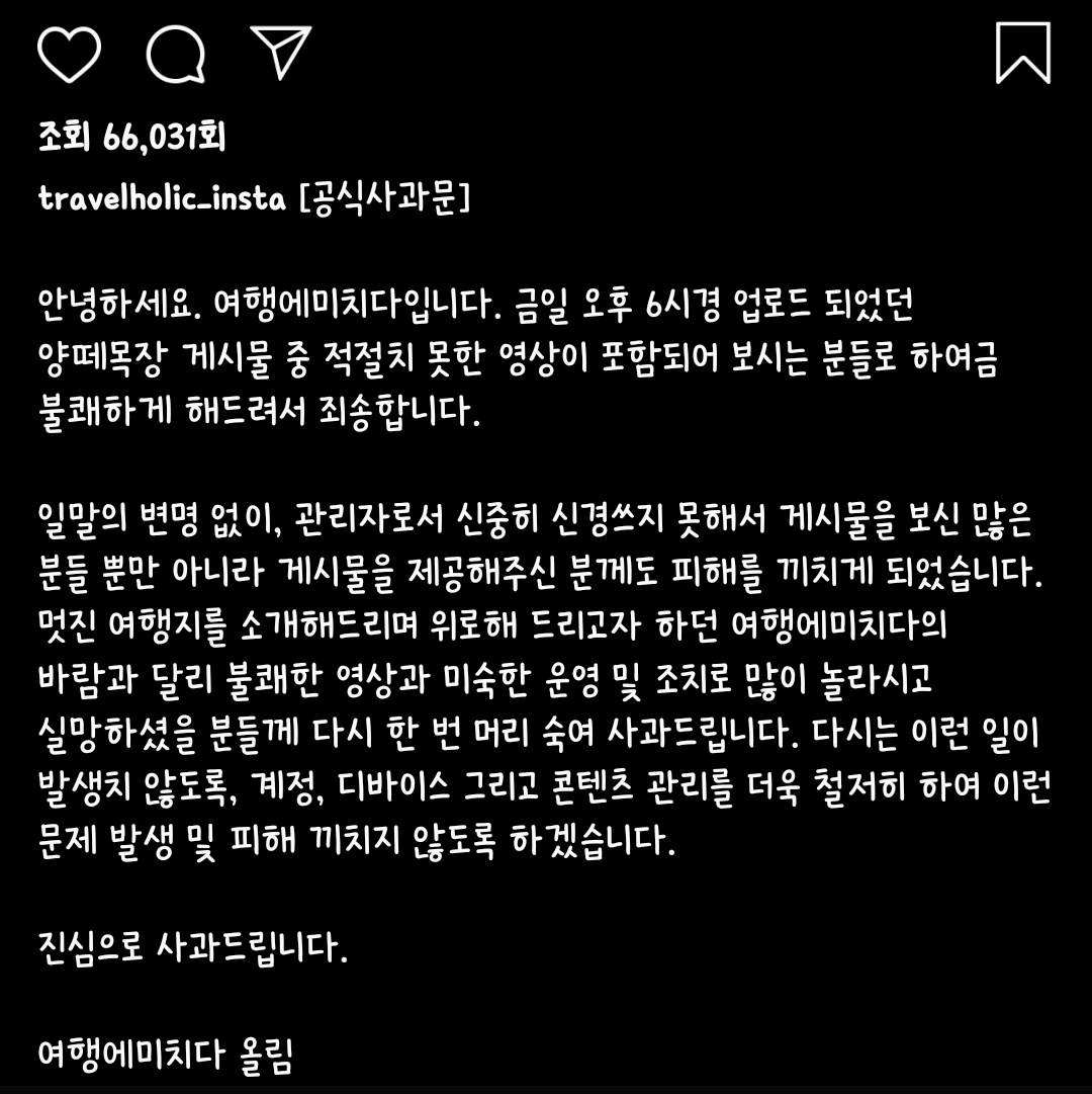 해당 영상을 올린 계정은 ‘여행에 미치다’라는 계정으로 평소 여행지와 함께 사람들의 여행 후기를 올려 많은 이들에게 사랑을 받던 계정이었다.