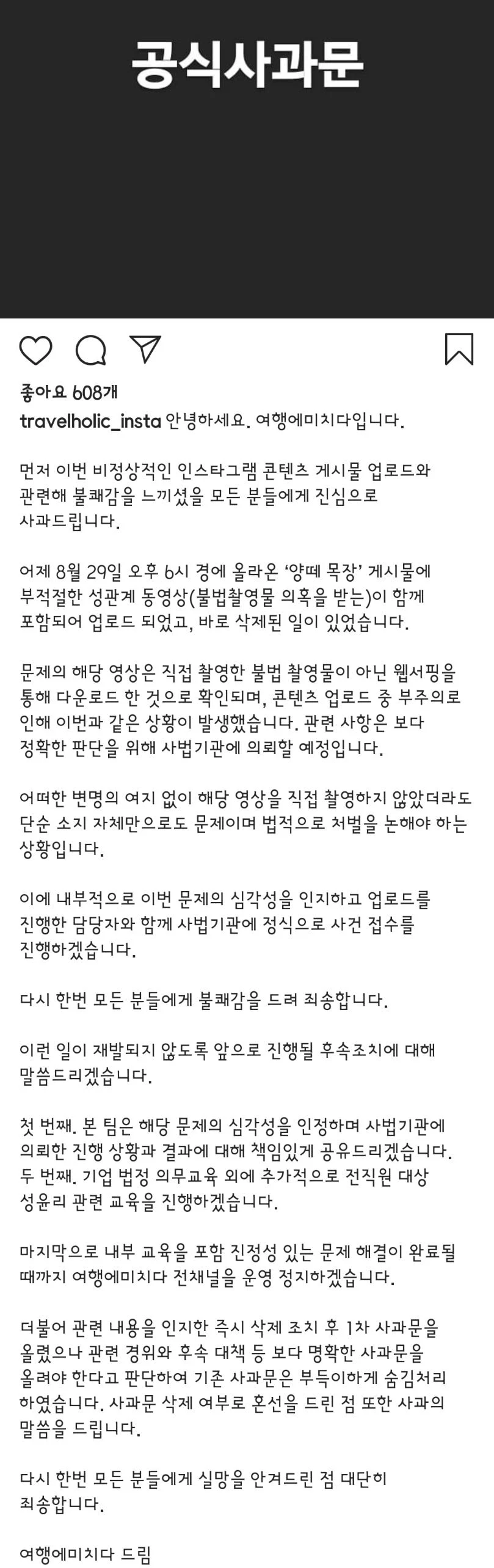 다음은 해당 대표의 사과문이다.