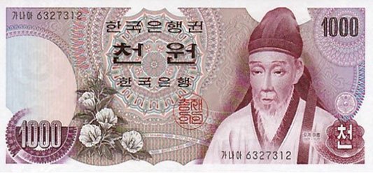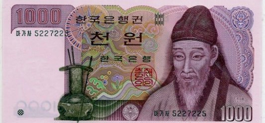 우리나라 천 원권의 1차 발행(가 권)일은 1975년 8월 14일이다.