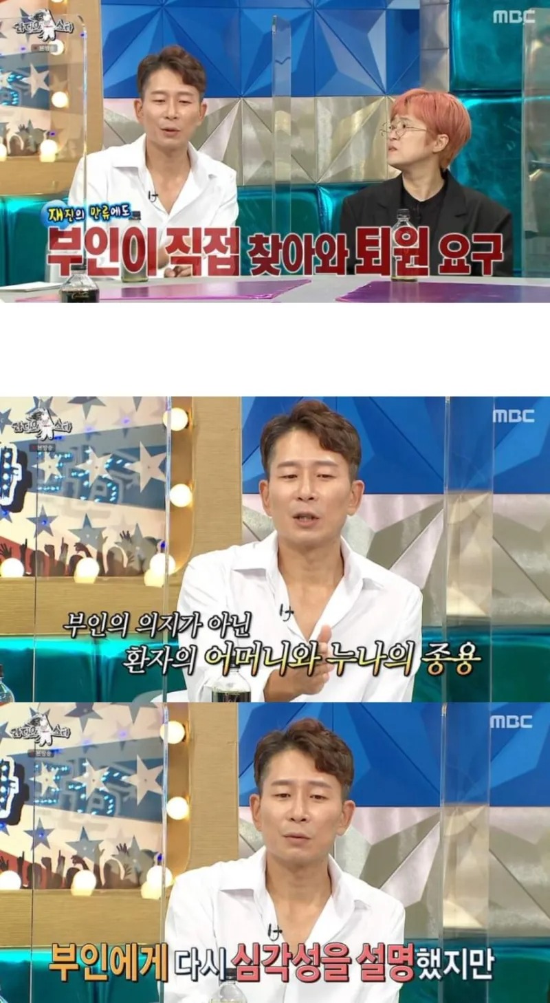 이어서 전문의는 “결국 환자의 어머니와 누나의 종용으로 부인이 남성을 퇴원시켰습니다.”라고 말을 덧붙였다.