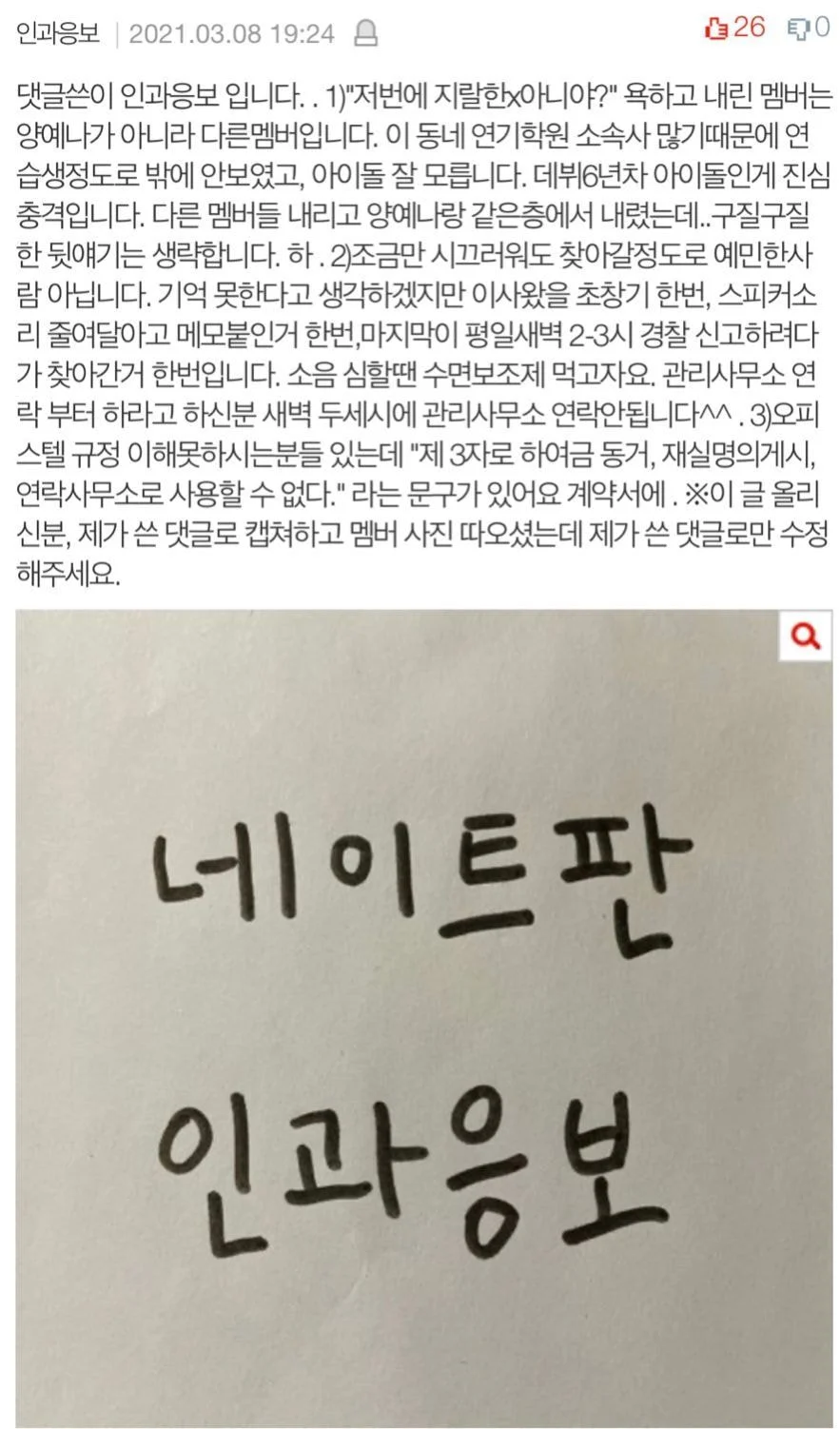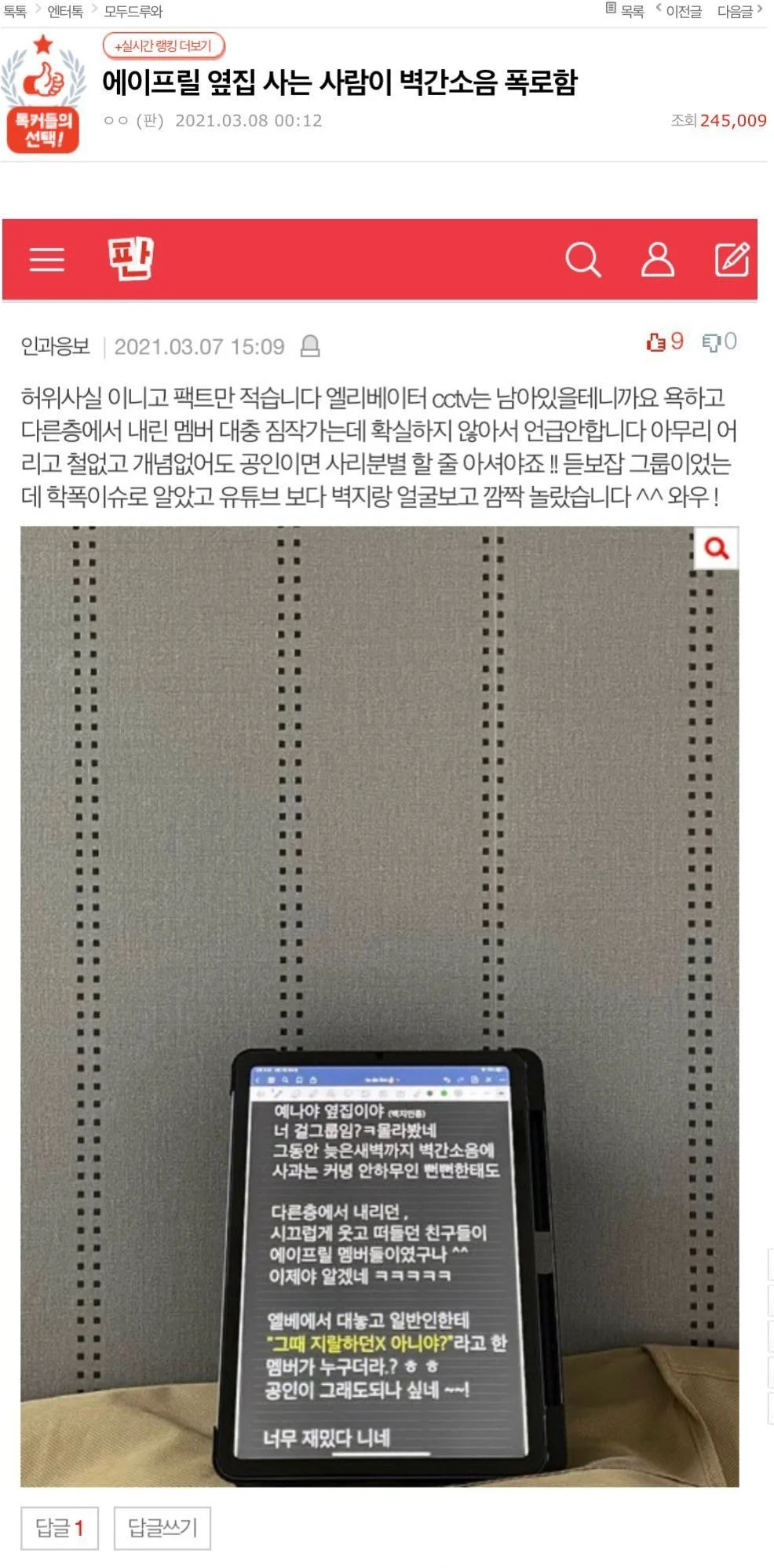 최근 걸그룹 에이프릴이 전 멤버 이현주를 왕따시켰다는 이슈와 관련해 논란이 끊이지 않는 가운데, 이번에는 멤버 양예나에 대한 벽간소음이 폭로되었다.