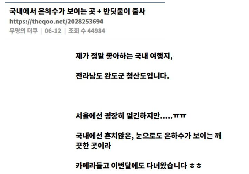“이번 여행지는 여기다!!!”..국내에서 유일하게 반딧불이와 은하수가 펼쳐지는 이 지역