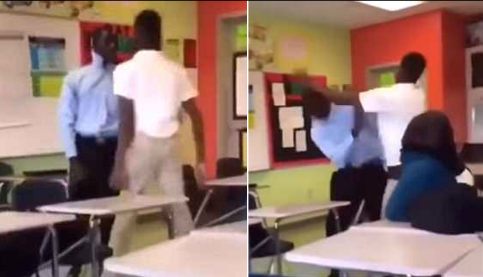 교실 한복판에서 선생님과 학생의 난투극이 벌어지며 충격을 자아냈다.