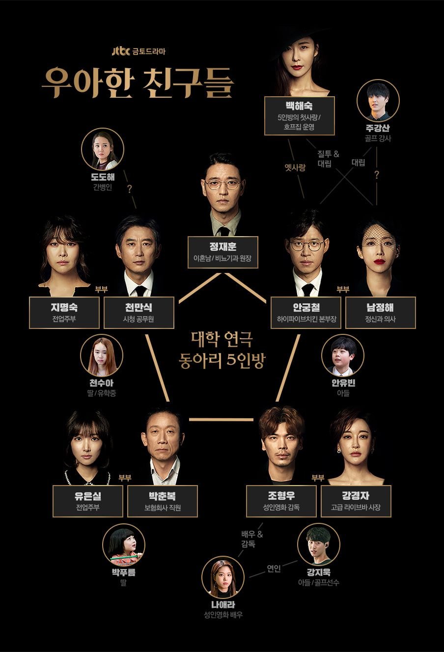 ‘우아한 친구들’의 줄거리를 보면 ‘갑작스러운 친구의 죽음으로 평화로운 일상에 균열이 생긴 20년 지기 친구들과 그 부부들의 이야기를 그린 미스터리’로 소개됐다.
