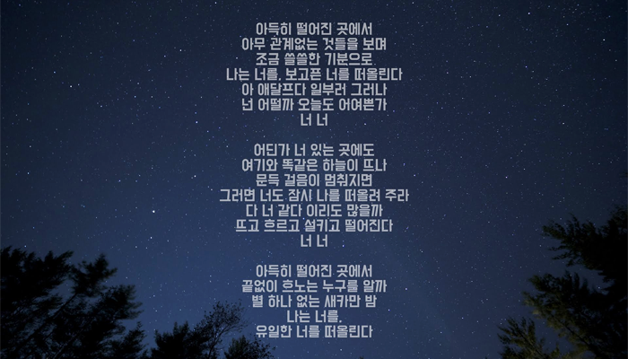 정식 음원으로는 나오지 않았지만 “아득히 떨어진 곳에서 아무 관계 없는 것들을 보며 조금 쓸쓸한 기분으로 나는 너를, 보고픈 너를 떠올린다”