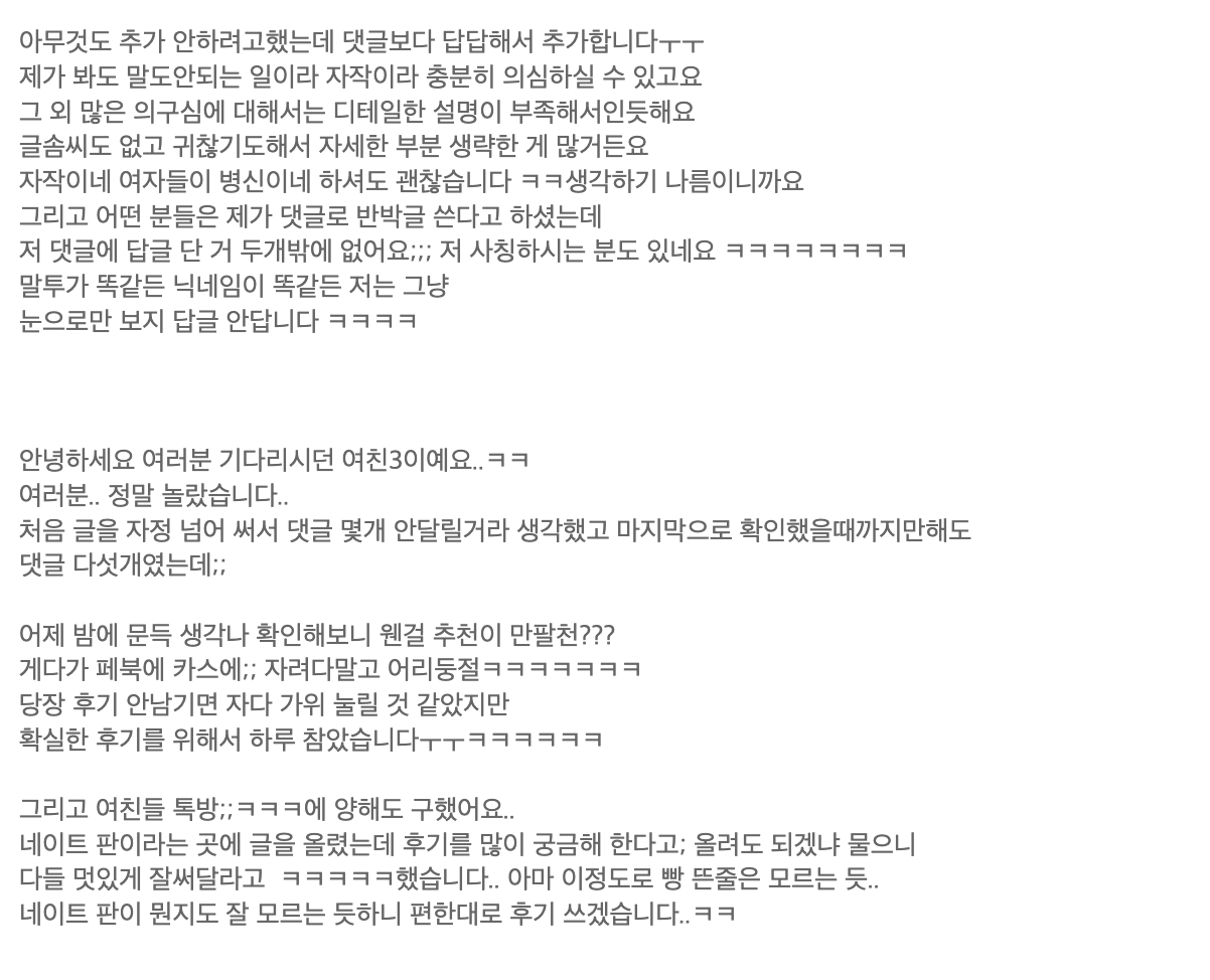 오늘 저녁까지도 기다려봤는데 소식이 없어서 요 정도로 후기 남깁니다