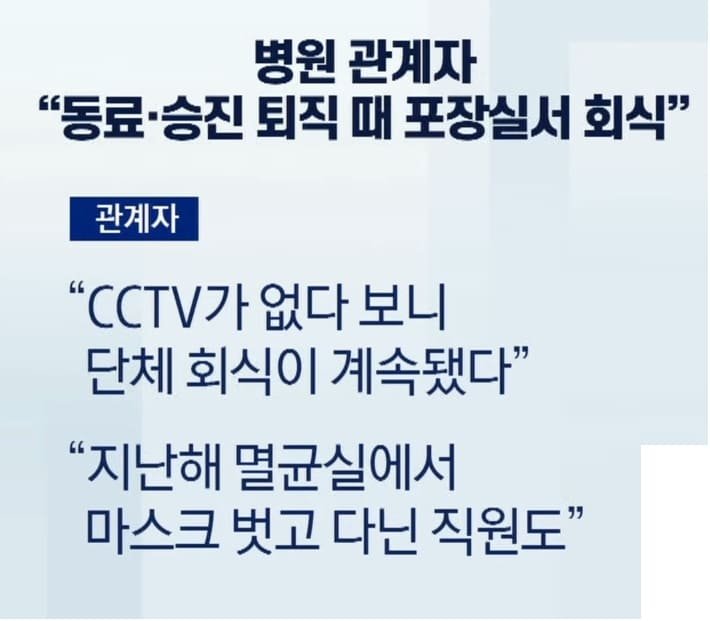 유명 수도권 병원에서 20명이 넘는 인원들이 마스크도 착용하지 않고 모였던 사실이 밝혀졌다.