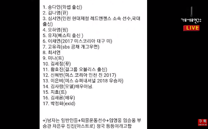 해당 영상에서 가세연 멤버들은 ‘FC Rumor W’ 회원 명단을 공개했다.