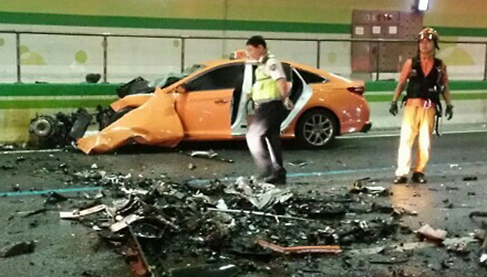 이날 고속도로를 역주행 하던 벤츠는 결국 양지터널 안에서 택시를 들이받았다.