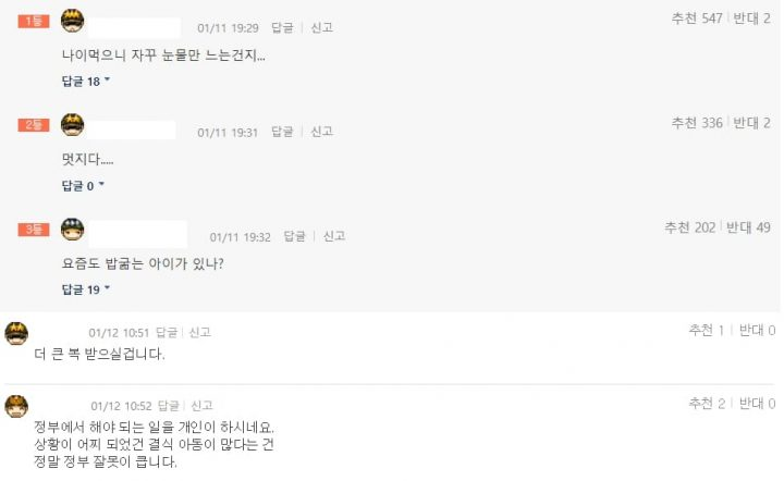 이를 본 누리꾼들은 “멋지다”, “더 큰 복 받으실거다”, “정부에서 해야 되는 일을 개인이 하시네요” 등의 반응을 나타냈다.