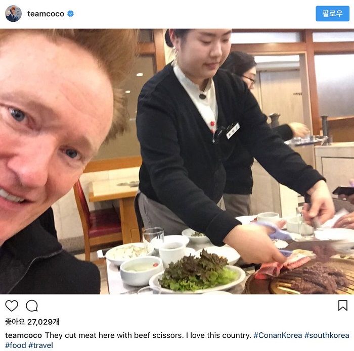 실제로 톰 홀랜드와 코난 오브라이언은 한국을 방문한 뒤 불빛이 나오는 변기와 가위로 고기를 자르는 종업원의 사진을 자신의 SNS에 공유해 눈길을 끌었다.