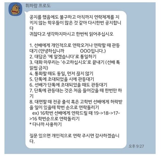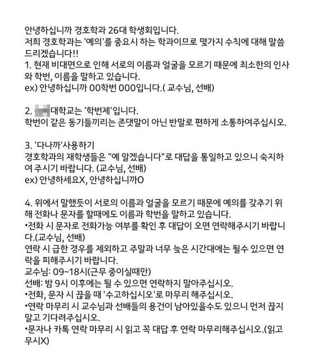 해당 게시글을 올린 작성자 A씨는 “예의를 중요시 한다는 학과 근황.jpg”라는 제목의 글로 많은 이들의 관심을 끌었다.