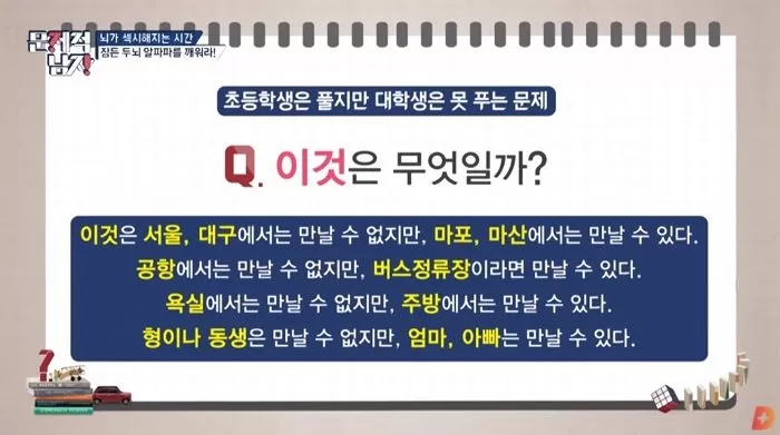 과거 ‘문제적 남자’에 등장했었던 한 문제가 온라인커뮤니티에 올라오면서 다시 화제가 되고 있다.