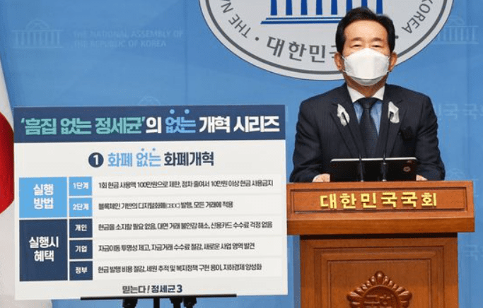 이날 오후 정 전 총리는 기자회견을 통해 “우리나라가 선도적인 정보통신기술과 첨단 기술을 활용해 현금 없는 경제를 도입한다면 다양한 경제 주체에게 많은 혜택을 제공할 것이다”라고 발표했다.