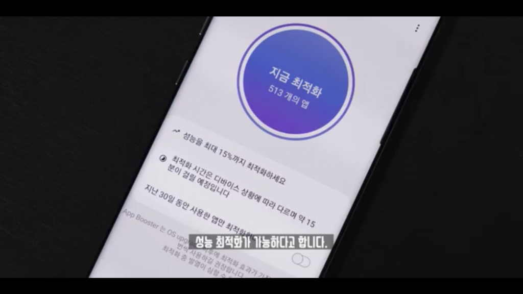 잇섭은 “앱 부스터를 누르게 되면 최대 15%까지 성능을 향상할 수 있다. 그런데 이건 핸드폰 사용 패턴에 따라 다르다. 최적화 버튼을 누르면 알아서 앱을 최적화한다”고 밝혔다.