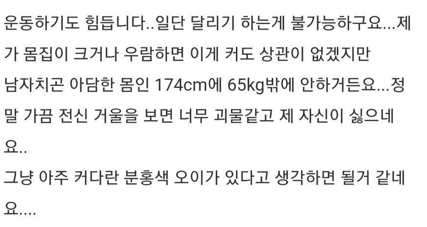 A 씨는 “남자들은 농담삼아 와 크면 여자들한테 인기 정말 많겠다고 하지만 너무 스트레스가 크다. 여자들이 싫어한다”고 전했다.