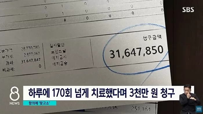 반년 만에 받은 진료 기록을 본 A씨는 너무나도 수상한 점들을 발견했고 진료 기록에는 하루 170회 이상 치료를 했다며 3천만 원을 요구했다.