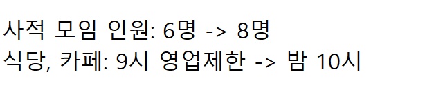 다만 사적모임 인원 제한은 최대 6인으로 유지된다.