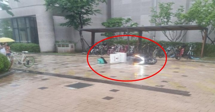 과거 아파트 단지서 배달 기사의 오토바이가 의문의 줄에 걸려 넘어지는 사건이 발생했었다.