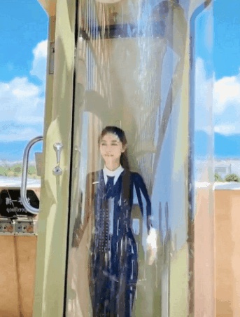 해당 게시물에는 한 여성이 투명 캡슐 안에 들어가 미끄럼틀을 타고 빠른 속도로 내려오는 모습이 담겼다.