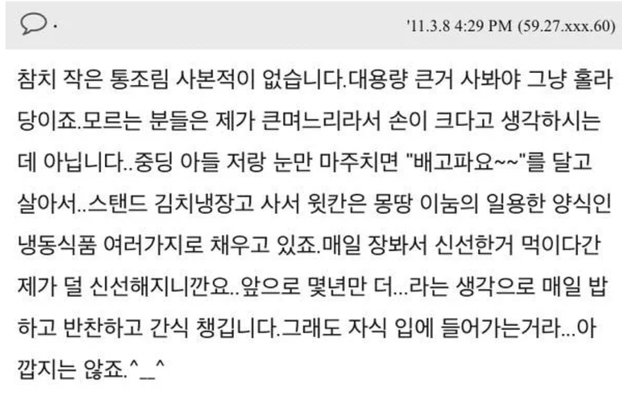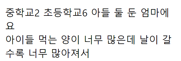 중학교2 초등학교6 아들 둘 둔 엄마에요” 라 첫 문장을 전했다.