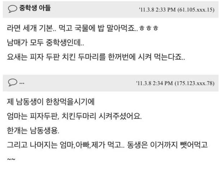 작성자 A씨는 “사춘기 애들 먹는 양;;” 라는 제목의 글로 많은 이들의 궁금증을 증폭시켰다.