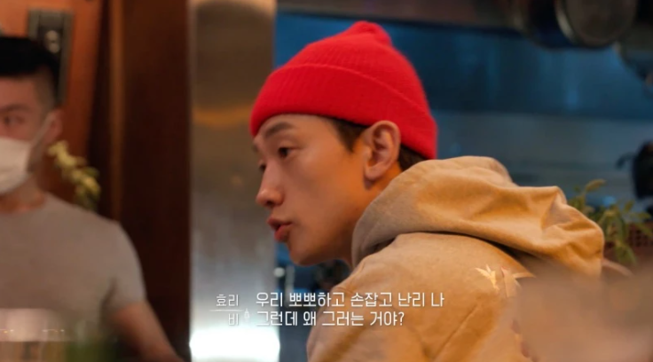 비와 이야기를 하던 이효리는 “너희는 (부부 사이) 아직 좋냐”고 묻자, 비는 “우리는 사귄 거 시작해서 10년 째다”라며 “밥 먹을 때 그렇게 예쁘더라. 양볼에 가득 밥이 채워진 거 보면 표정이 예쁘다”라 대답하며 김태희에 대한 무한한 애정을 뽐냈다.