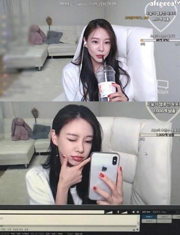 해당 게시물에는 아프리카TV에서 방송활동을 하고 있는 그녀의 모습이 담겨져 있다.