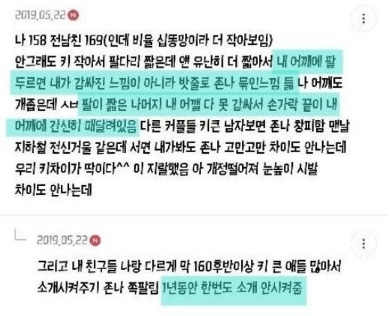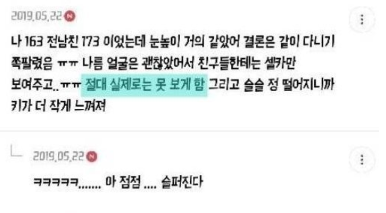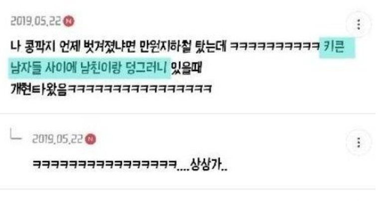 2. “만원 지하철이나 사람많은 곳에서 키큰 남자들 사이에 있는 키작은 남자친구를 보면 현타온다”