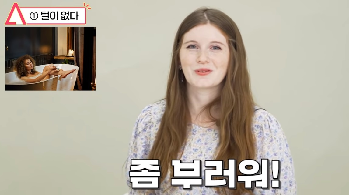 영상 속 외국인은 첫 번째로 “한국인은 털이 정말 없다”라고 말하며 팔에 털이 많은 사람은 별로 없고, 이러한 점이 너무 부럽다고 말했다.