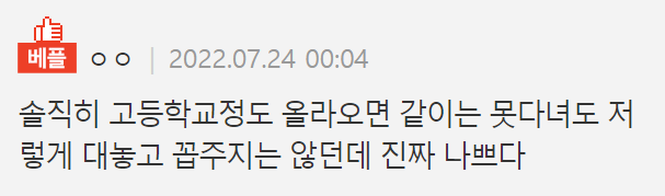 근데 개인적으로 교복에 얼굴까지 다 공개한 상태에서 찐따 브이로그라고 올리면 솔직히 반 애들 입장에선 자기들이 소외시킨다고 오해받을 수 있으니까 기분 나쁘지 않을까 .. 물론 그렇다고 꼽주거나 욕하는건 잘못된거임