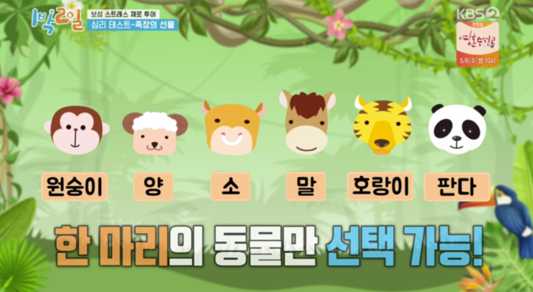 족장이 선물로 동물을 준다고 하는데… 원숭이, 양, 소, 말, 호랑이, 판다 중 한마리의 동물만 선택이 가능하다면 당신은 무엇을 고를 것인가?”