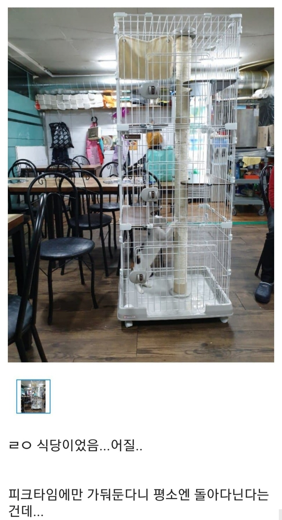 또 “피크타임에만 케이지에 들여보낸다는 거 보니 평소에는 고양이가 식당을 돌아다닌다는 뜻 같네요. 정말 놀랍습니다.”라는 반응도 보였다.