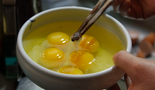 계란을 풀어서 섞는 식으로 노른자위와 흰자위의 경계를 흐릴 경우 양 부분의 식감 차이는 줄어든다.