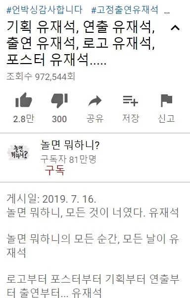 여기서 알게 된 놀라운 사실은 ‘놀면 뭐하니’의 로고 포스터 모든게 유재석이 디자인한 것으로 로고도 직접 유재석이 작성했다는 것이다.