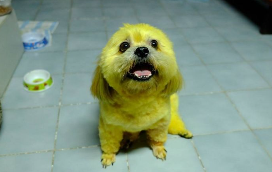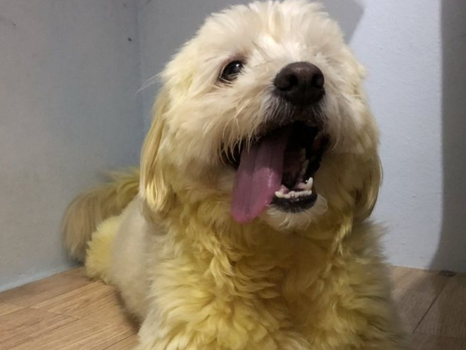 강아지는 노랗게 물들어진 털을 가지고 환하게 웃고 있었는데 ‘염색약’이 강아지 몸에 매우 해롭다고 알려져 많은 이들이 분노한 것이다.