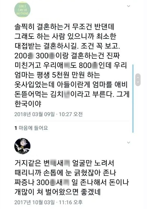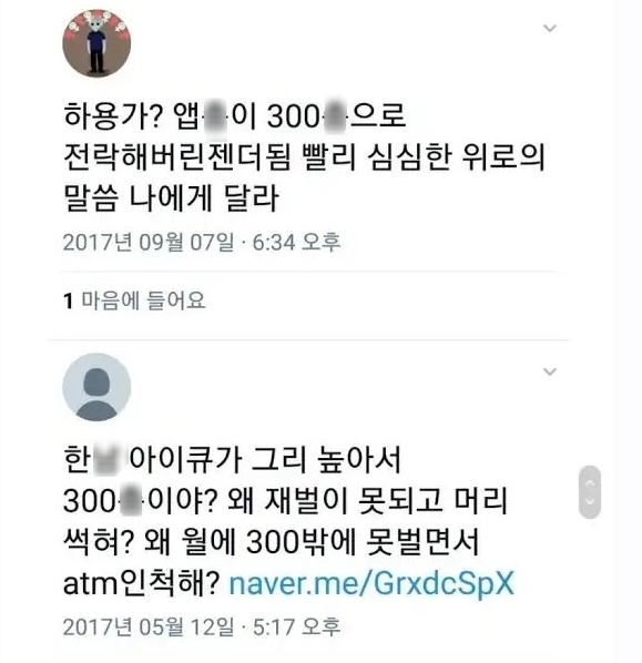 해당 글을 올리는 여성들은 트위터 페미니스트이며 300을 버는 남성들에게 “월 300만원밖에 벌지 못하면서 atm 기계인 척하고 다닌다”라는 망언을 했다.