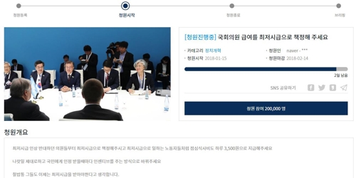 최근 국민들은 청와대 홈페이지를 통해 ‘국회의원 급여를 최저시급으로 책정해주세요’라는 청원을 남겨 화제가 되기도 했다.