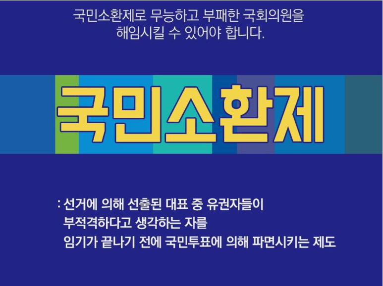 ‘국회의원 소환제’는 국민이 부적격한 국회의원을 임기 중 소환해 투표로 파면할 수 있게 만든 제도다.