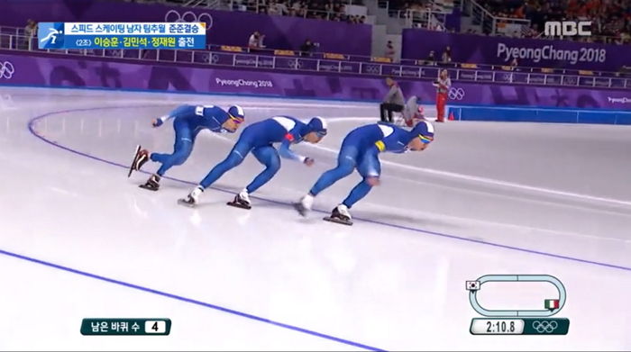 지난 18일 강릉 스피드스케이팅 경기장에서 열린 준준결승에서 3분39초29의 기록으로 8개 출전팀 가운데 1위로 준결승에 진출하게 됐다.
