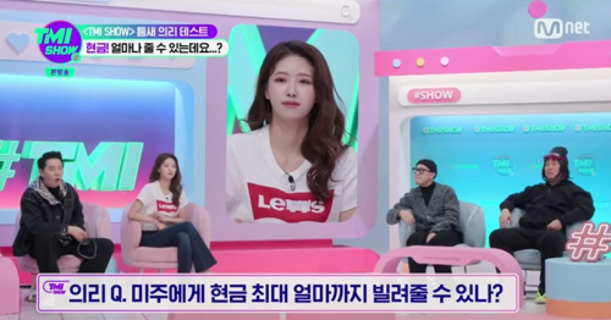 MC붐은 둘에게 의리 테스트를 하기 위해 “미주에게 현금 최대 얼마까지 빌려줄 수 있냐”라고 묻자, 하하는 “1장”이라고 얘기했지만 정준하는 “20억 원”이라고 하였다.
