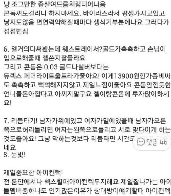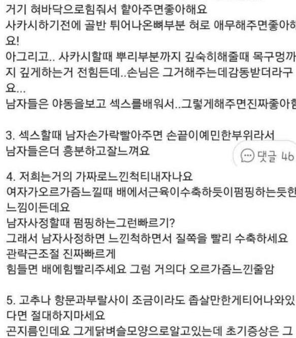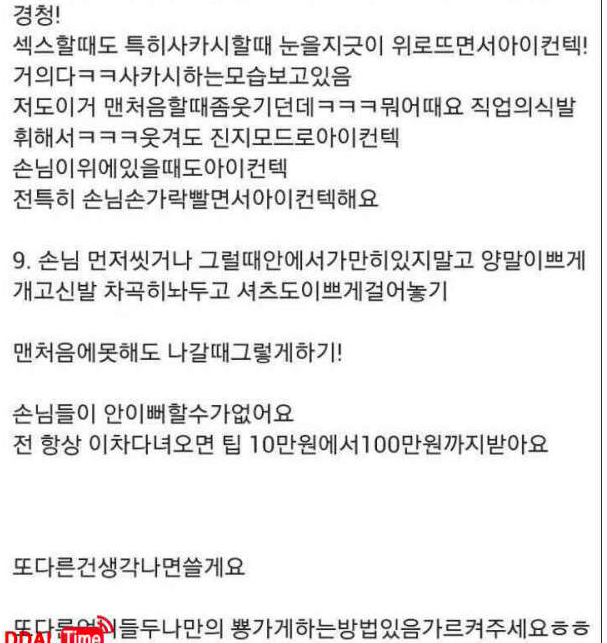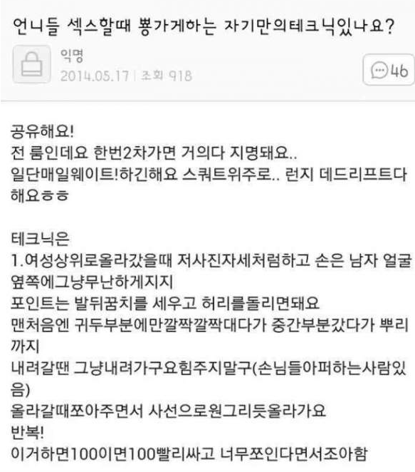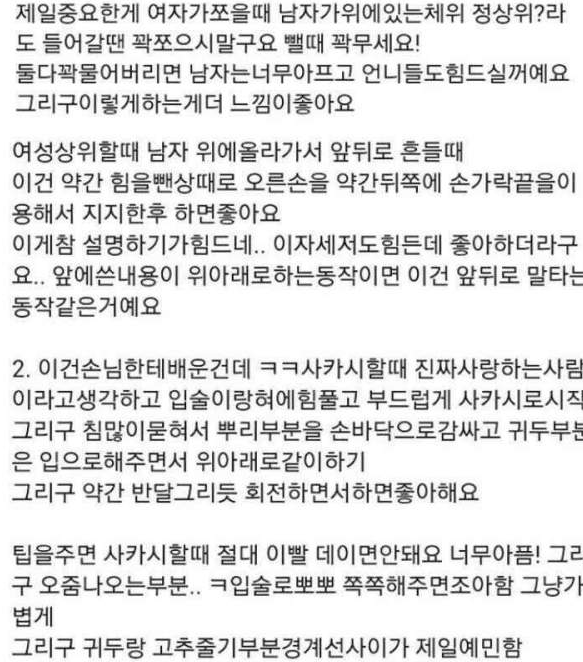 업소에서 일하는 여성이 “언니들 XX 할 때 뿅가게 하는 자기만의 테크닉 있나요?”라는 글을 올린 것이 캡쳐돼 올라와 있었다.