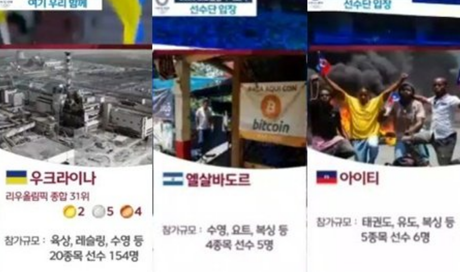 MBC는 체르노빌 원자력 발전소 사진 외에도 엘살바도르 선수단을 소개할 때는 비트코인 사진을 넣었다.