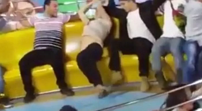 디스코팡팡 타다가 바지 벗겨진 여성.