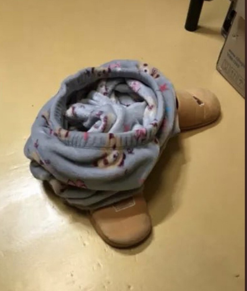 바로 슬리퍼 위에 수면바지가 벗은 모습 그대로 놓여져 있는 모양새였다.