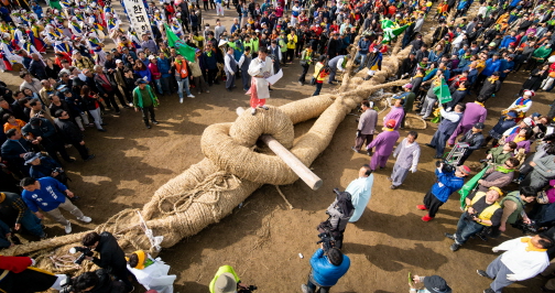 이런 소규모 줄다리기는 긴 밧줄 하나만 쓰는 경우가 많지만 대규모민속 줄다리기에는 거대한 밧줄에 가는 줄을 달아서 그 줄을 잡아당긴다.