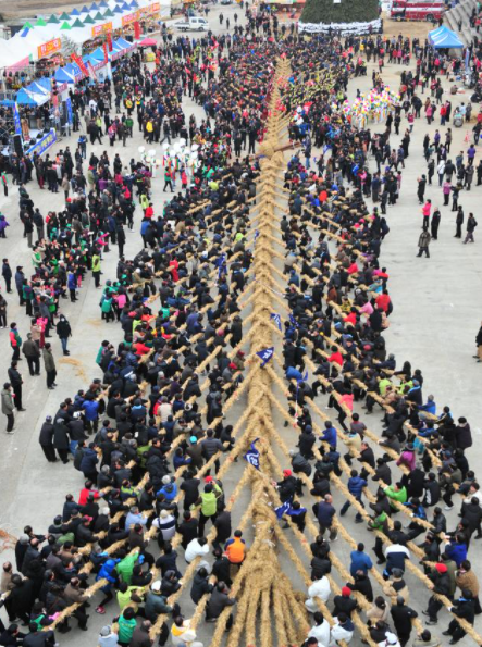 줄다리기는 전 세계적으로 하는 운동경기 중 하나로 긴 밧줄을 가운데 놓고 양쪽 편에 사람들이 서서 정해진 시간동안 줄을 잡아당겨 줄을 많이 끌어온 팀이 이기는 놀이다.