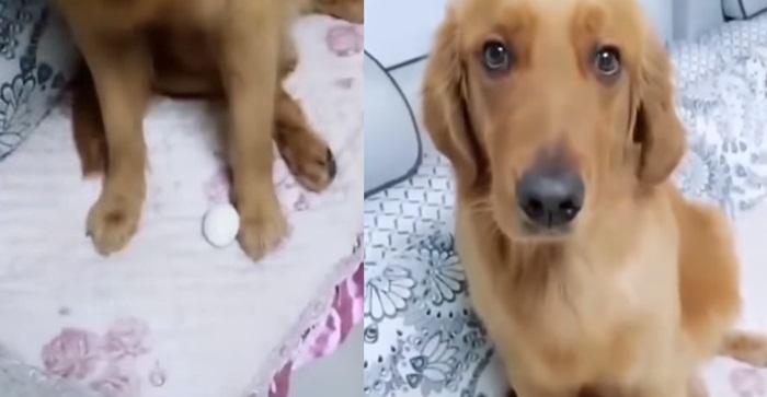 주인 몰래 삶아둔 달걀을 입안에 쏘옥 숨겨버린 반려견의 귀여운 모습이 화제다.