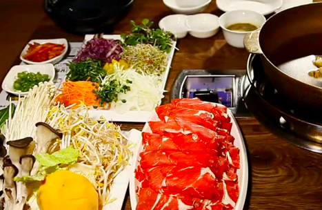 샤브샤브는 얇게 저민 쇠고기와 갖가지 채소를 끓는 육수에 즉석에서 데쳐서 양념장에 찍어 먹는 요리다.